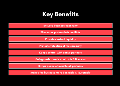 If a key partner or founder passes away, the company receives a lump-sum payout.